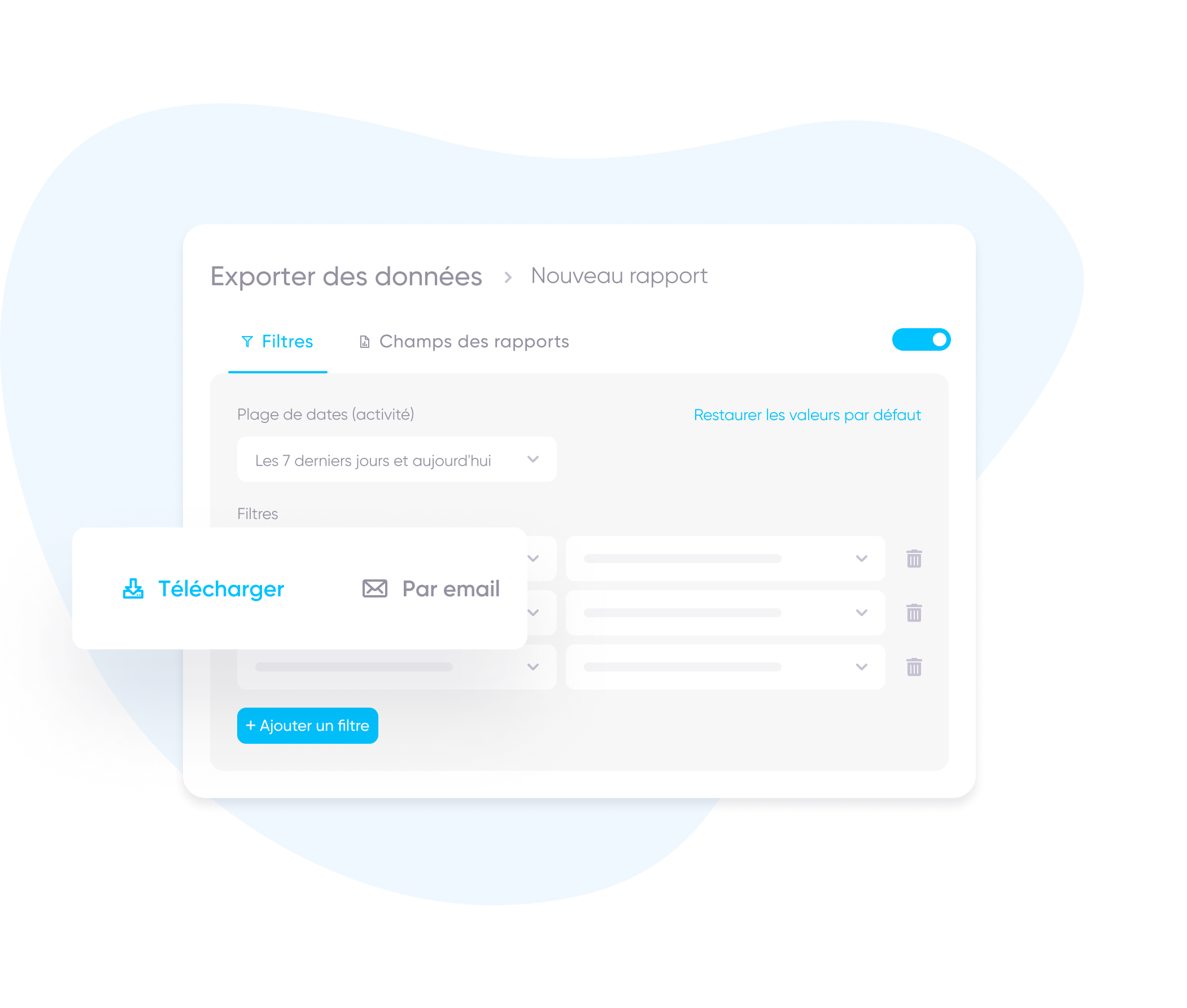 Obtenez des rapports complets sur les données brutes envoyées directement à votre solution de stockage dans votre cloud. Et cela, en toute sécurité et en toute simplicité, tout en vous assurant que vos données sont disponibles 24 heures sur 24 et 7 jours sur 7.
