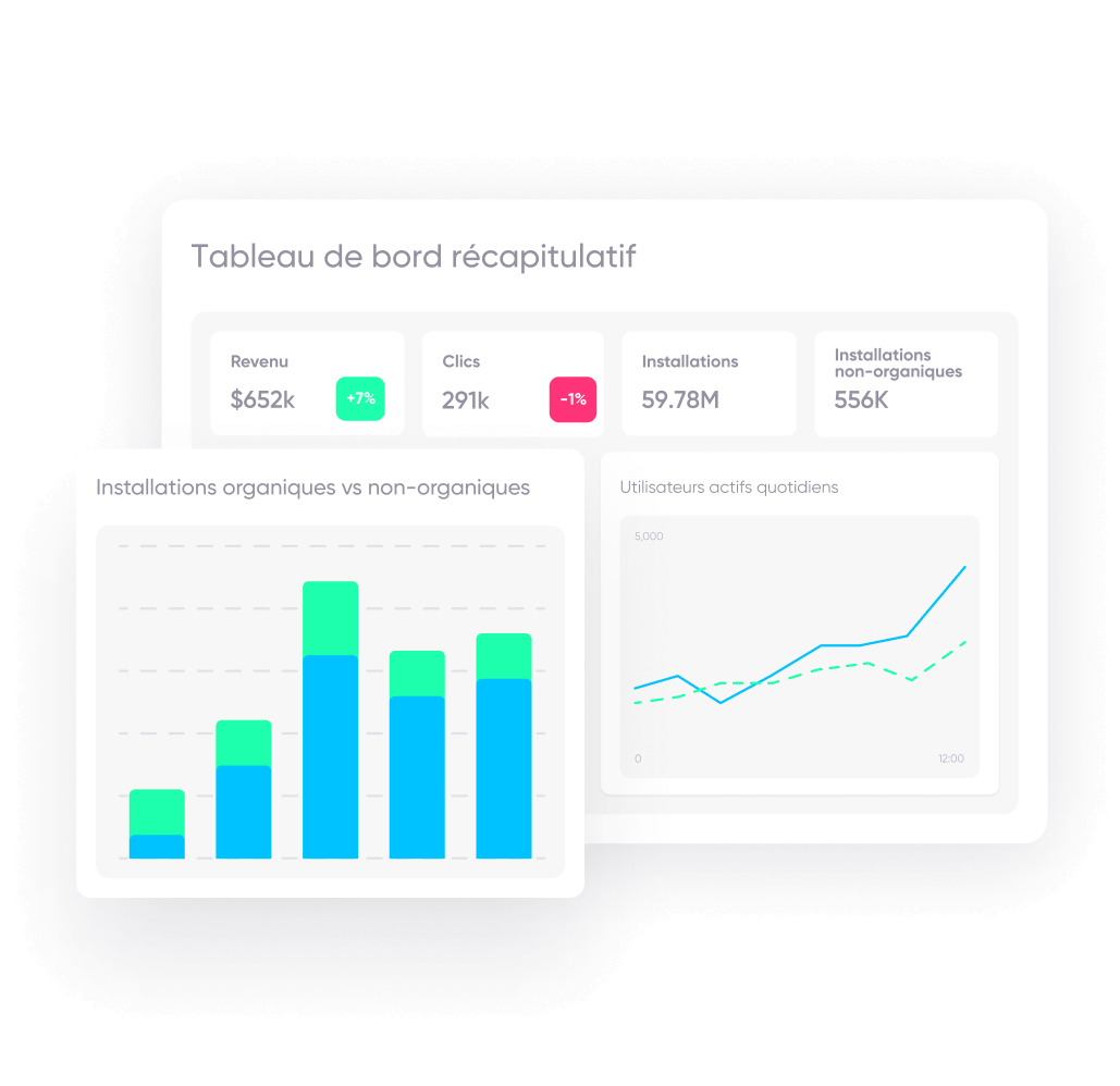 Augmentez les conversions et réduisez les coûts publicitaires avec des campagnes efficaces. Obtenez les informations les plus précises basées sur les performances des campagnes pour renforcer ce qui génère des revenus et attire des utilisateurs de grande valeur sur chaque canal.